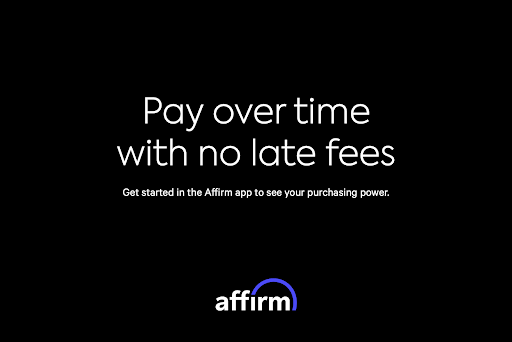 Pay over time with no late fees. Get started in the affirm app to see your purchasing power.