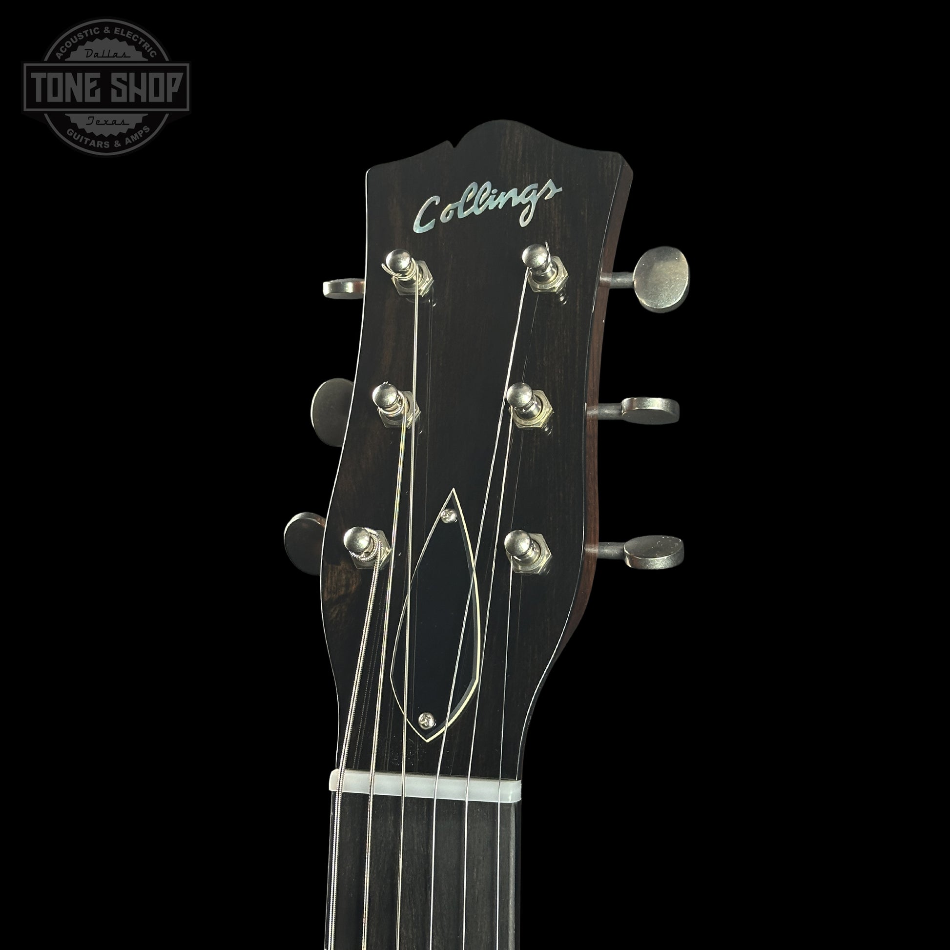 - Peghead: Ebony veneer w/ MOP Collings script; “470 JL Haircut” profile
