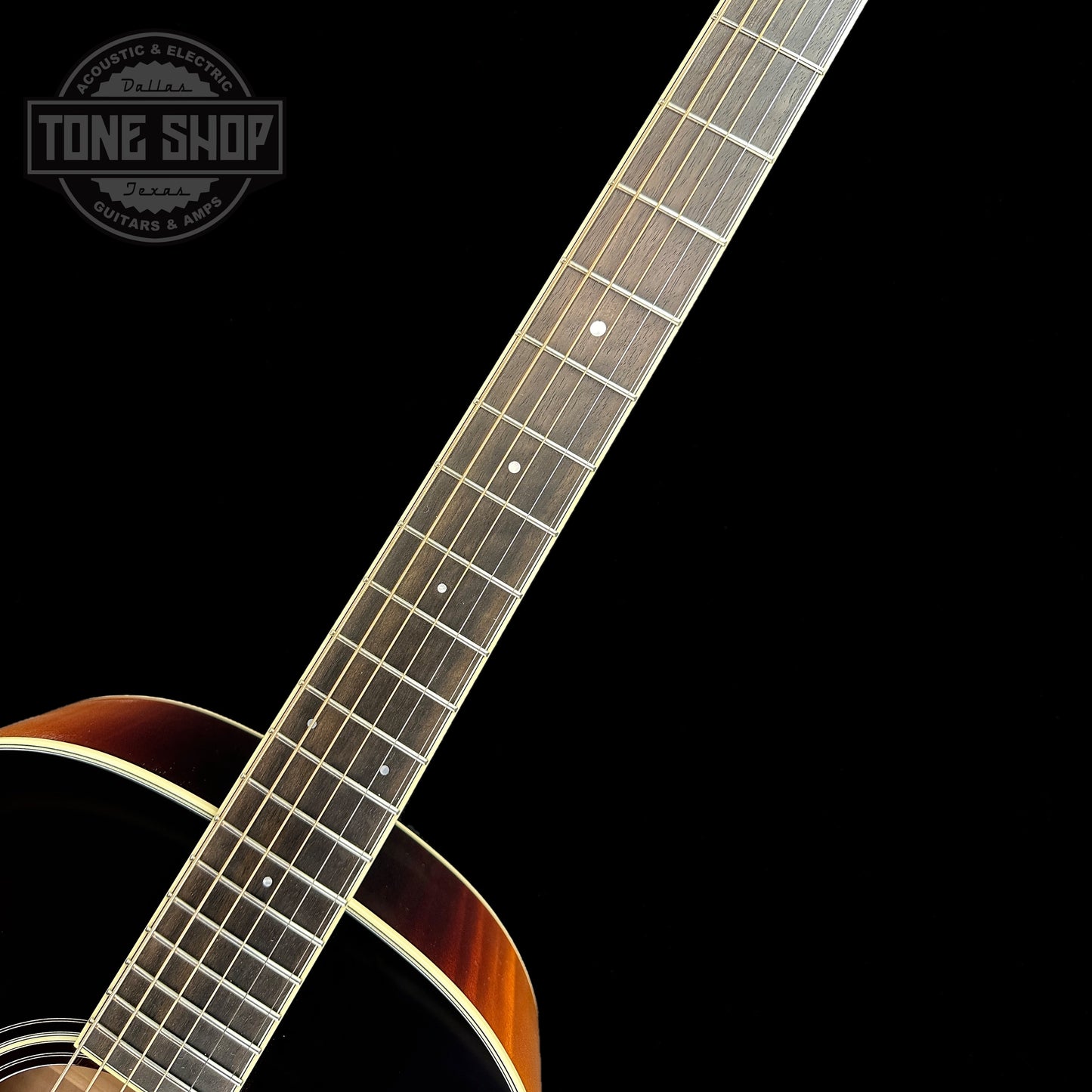 The Collings Jumbo, or CJ, is their version of the classic slope-shouldered dreadnought, a shape that has enjoyed renewed popularity in recent years. While the CJ is similar in width and depth to the traditional dreadnought, it has a distinctly different tone. Despite its large size this model works well with the optional shorter string scale, resulting in a somewhat percussive bottom end ideal for acoustic blues or other styles that benefit from a more controlled bass response. Of all the Collings body shapes, this is the one most often requested with a sunburst top finish, and the wide range of wood options, neck widths, and string scales allow the CJ to be many different guitars to a wide variety of players.