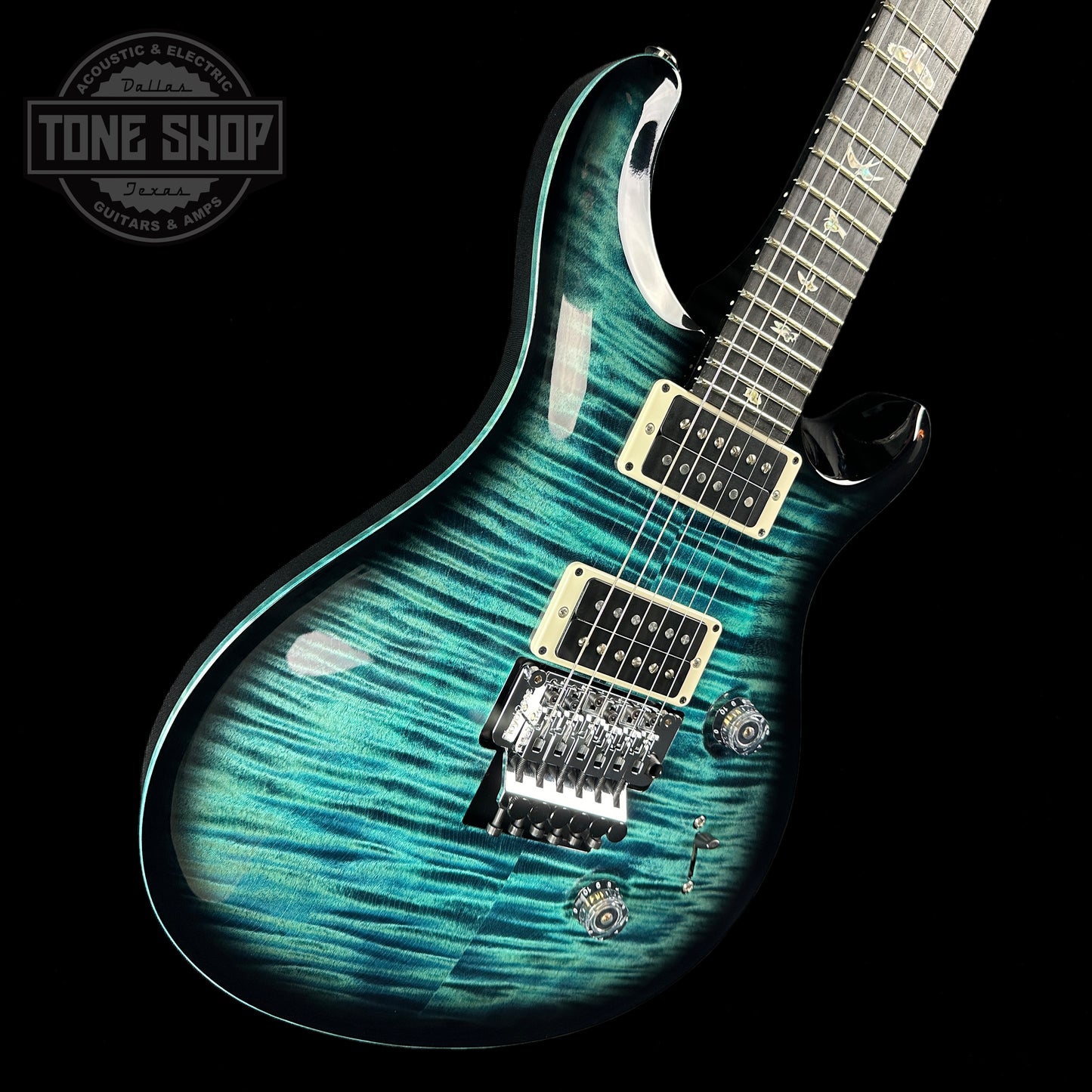 The Custom 24 "Floyd" is equipped with the time-tested Floyd Rose "Original" tremolo system and PRS's \ m / (metal) pickups. The Floyd Rose "Original" tremolo and locking nut tuning system is a double-locking design precision-made from high quality steel. This design combination allows players to lock the string at the nut and at the bridge to keep the guitar in tune even during the heaviest dive-bombing sessions.