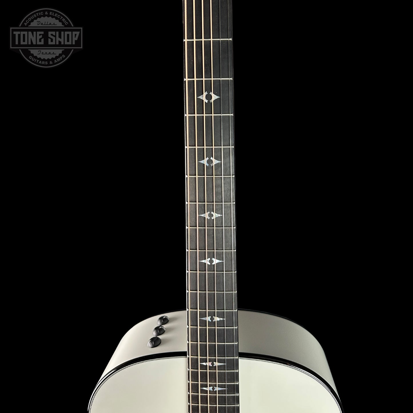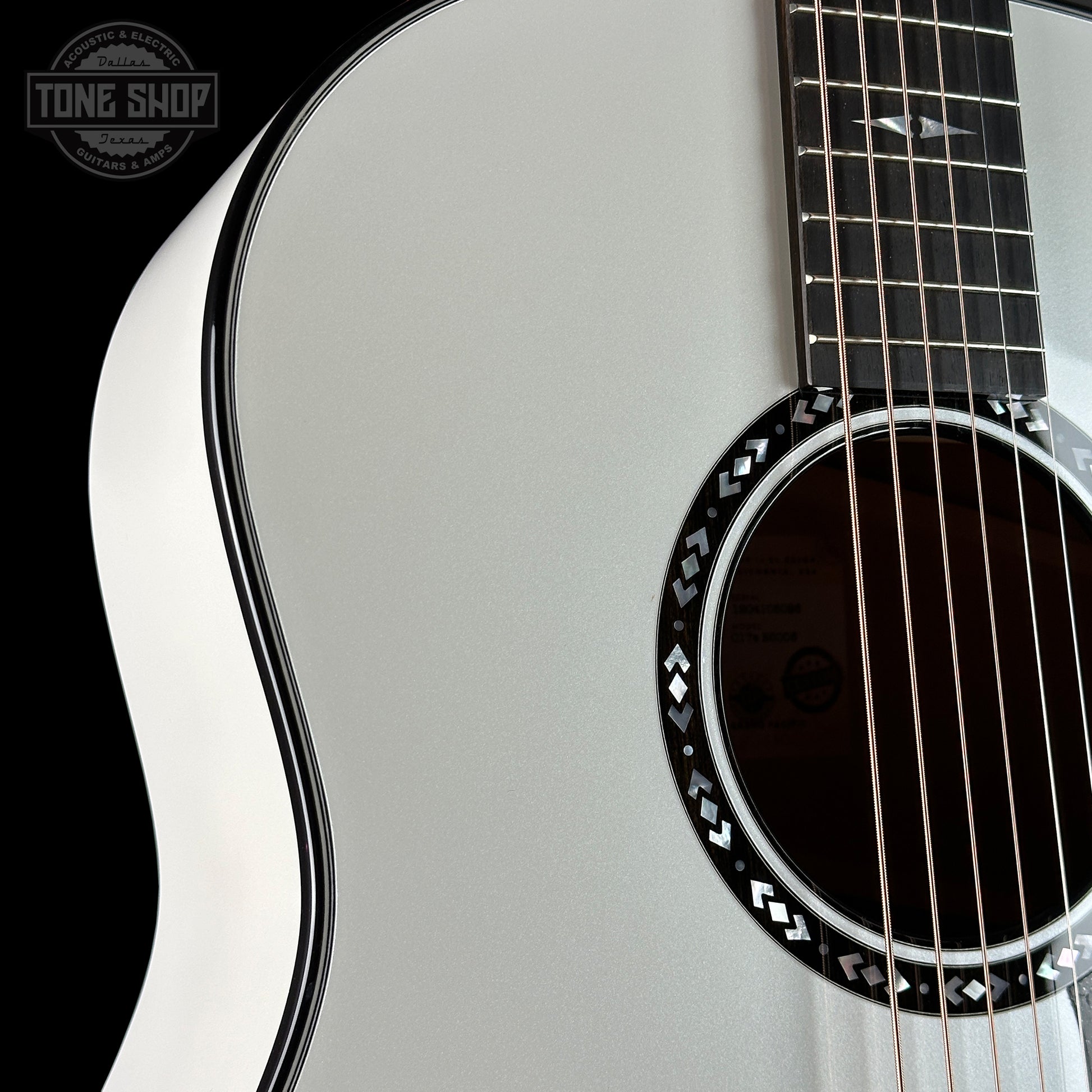 With its striking Pearl White finish and powerful, seasoned sound, this custom Grand Pacific delivers a high-impact visual and sonic experience. Back and sides of solid, hand-selected mahogany yield a warm, punchy midrange response, while a torrefied Sitka spruce top adds projection and aged-in warmth, creating a blended, seasoned tone with clear low-end power. V-Class interior bracing delivers more volume, longer sustain and greater harmonic agreement between notes. Thanks to an array of high-contrast visual details, including mother-of-pearl Progressive Diamond inlays, a mother-of-pearl/ebony Nations rosette, ebony binding and black/white edge trim, this custom model is sure to command attention. Premium Gotoh 510 antique chrome tuning machines with black buttons offer ultra-precise tuning while the onboard ES2 electronics let you to dial in your plugged-in tone with ease. It ships with a Western Floral deluxe hardshell case.