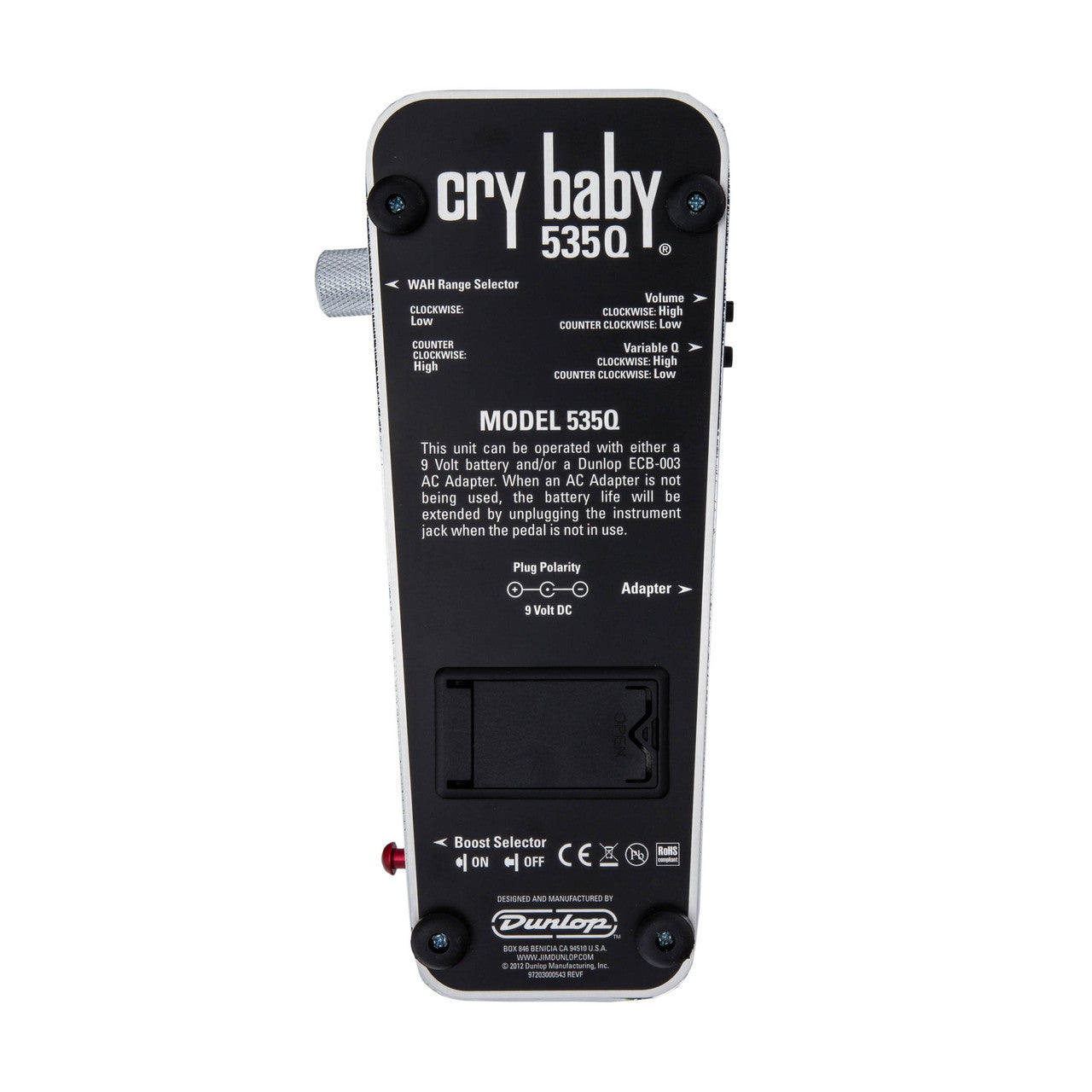The 535Q is the Swiss Army knife of wah pedals. It provides control over the most important wah parameters, making it easy for you to create your ultimate wah tone. Select the frequency center of the effect, then dial in the frequency range to be swept by the pedal. From narrow and sharp to broad and subtle, this amazing wah can deliver it. Once you've got your sound, make sure it gets heard with the adjustable, switchable boost that can create endless sustain on any note.