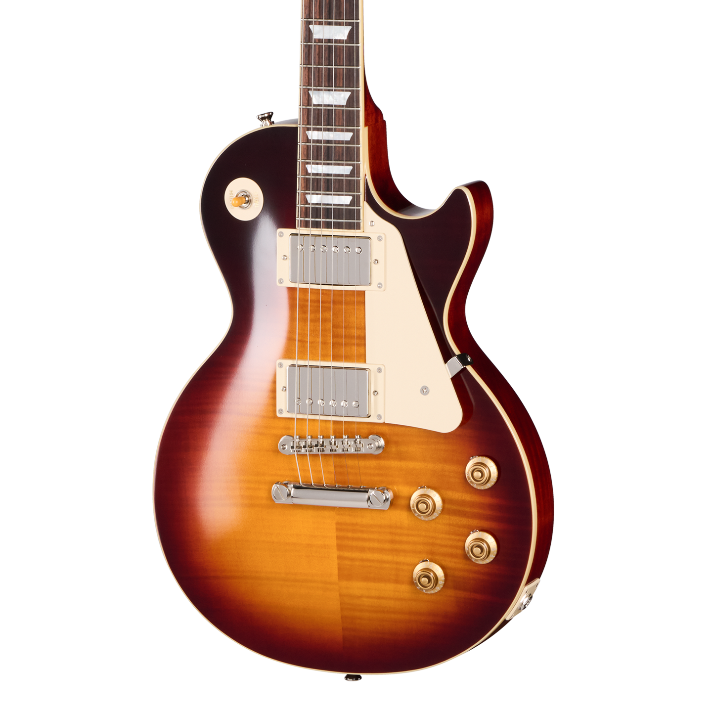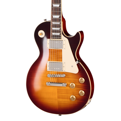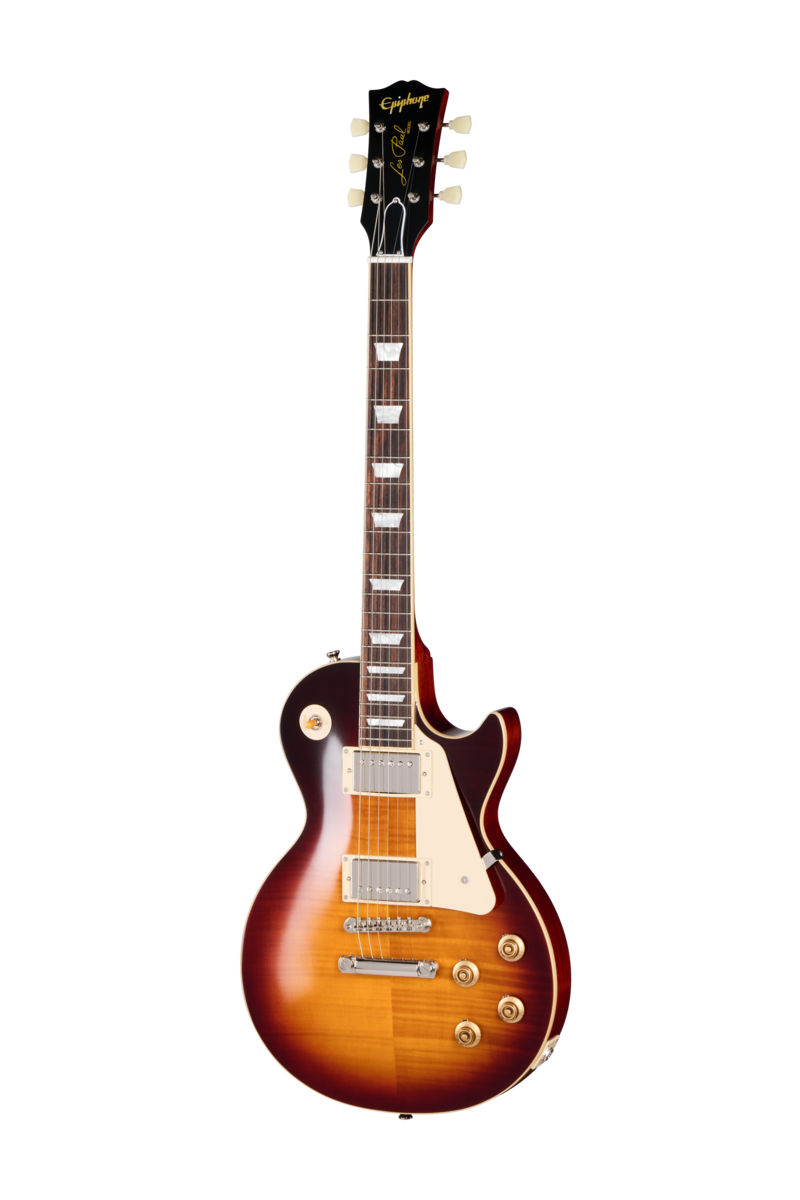 The 1959 Gibson Les Paul Standard is one of the world’s most coveted–and valuable–vintage guitars. It has been embraced by numerous famous players, including Peter Green, Kirk Hammett, and Joe Bonamassa. The 1959 Les Paul Standard is very similar to the 1960 model year that followed it, but with a few differences, most notably, a somewhat beefier 1959 Rounded Medium C neck profile that many players prefer over the thinner SlimTaper profile found on the 1960 Les Paul Standard models. Now, Epiphone is proud to introduce the Epiphone 1959 Les Paul Standard Reissue, a beautiful recreation of those rare 1959 Les Paul Standard models. Made in partnership with Gibson Custom, the Epiphone 1959 Les Paul Standard Reissue delivers vintage Les Paul looks and performance at an accessible price. All of the classic appointments the 1959 Les Paul Standard model is known and loved for are present here, including a one-piece mahogany neck with a long neck tenon for increased stability and sustain, an authentic 1959 Rounded Medium C neck profile, and a bound rosewood fretboard. It also features mother-of-pearl trapezoid fretboard inlays, an aged mother-of-pearl Epiphone headstock logo, and the words “Les Paul Model” silkscreened in gold on the Gibson-style “open book” headstock. Even the side dot position markers are the same size as on vintage 1959 Les Paul Standard models and are placed in historically accurate locations. The genuine mahogany body Standard models and are placed in historically accurate locations. The genuine mahogany body features a carved maple cap that is topped with a beautiful AAA flamed maple veneer. The electronics are first class, with two USA Gibson Custombucker humbucking pickups with Alnico 3 magnets that are hand-wired to CTS potentiometers, Bumblebee paper-in-oil capacitors, and a Switchcraft pickup selector toggle switch and 1/4” output jack. The Vintage Gloss finish gives the guitar a vintage appearance without looking overly aged and is nicely complimented by the nickel hardware, including the Epiphone Deluxe “Single Ring” Keystone button tuners. A Brown hardshell case with Inspired by Gibson Custom graphics and a pink plush-lined interior is also included. This is the perfect Les Paul for players who love the vintage appeal of the classic 1959 Les Paul Standard but don’t want to mortgage or sell the house to afford one.