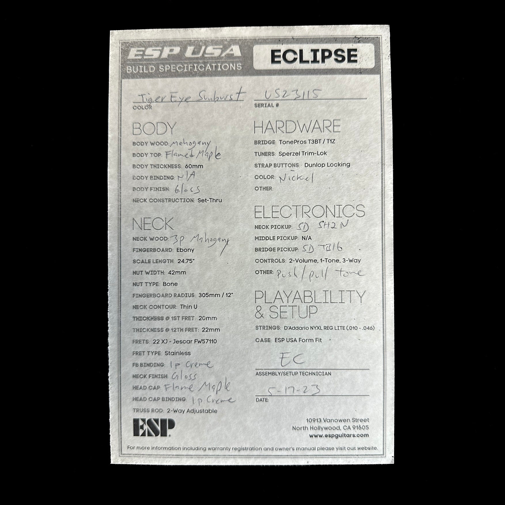 ESP USA Eclipse FM Tiger Eye Sunburst w/case