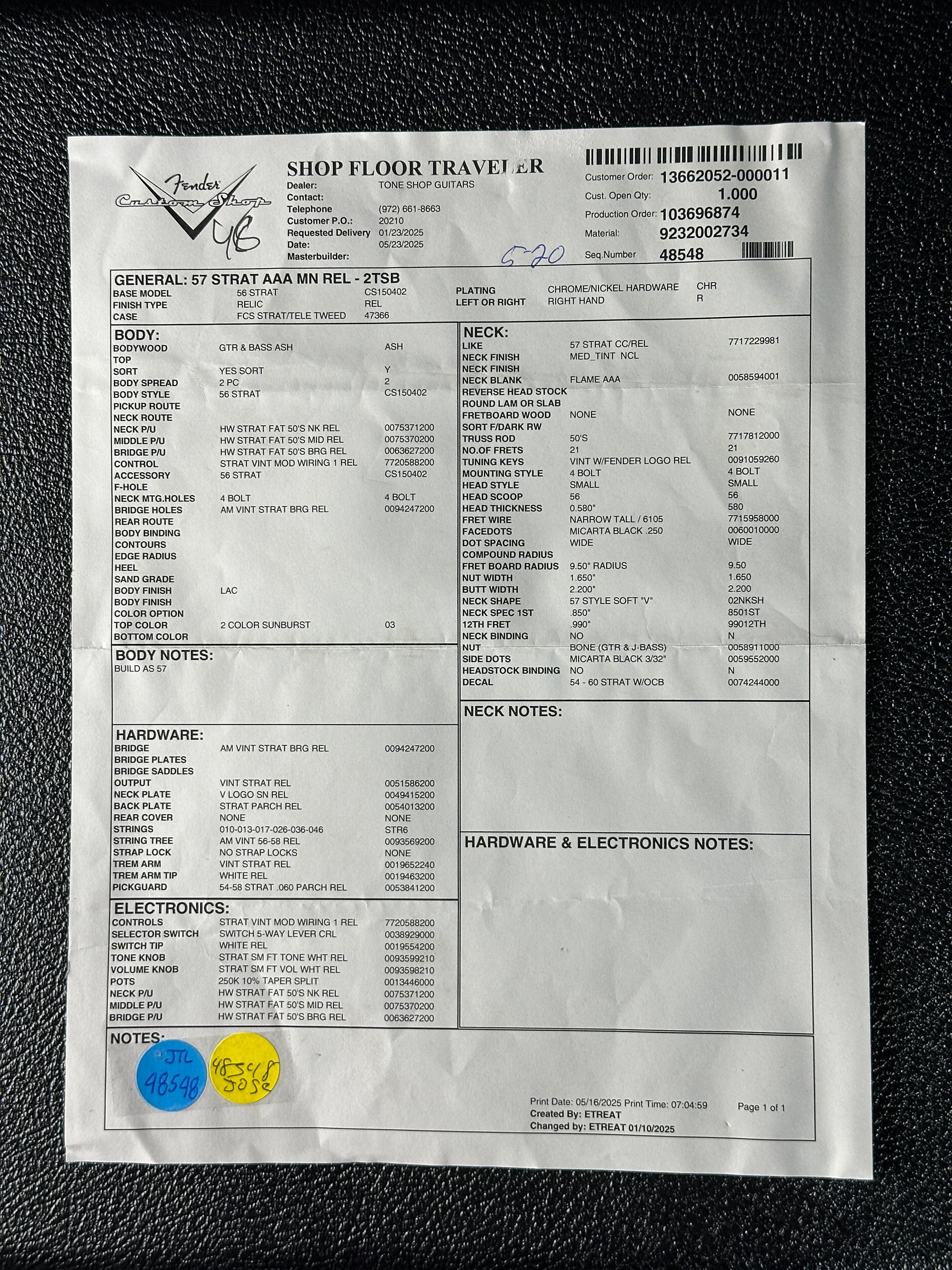 - Case: Fender Custom Shop Strat/Tele tweed hardshell case included
