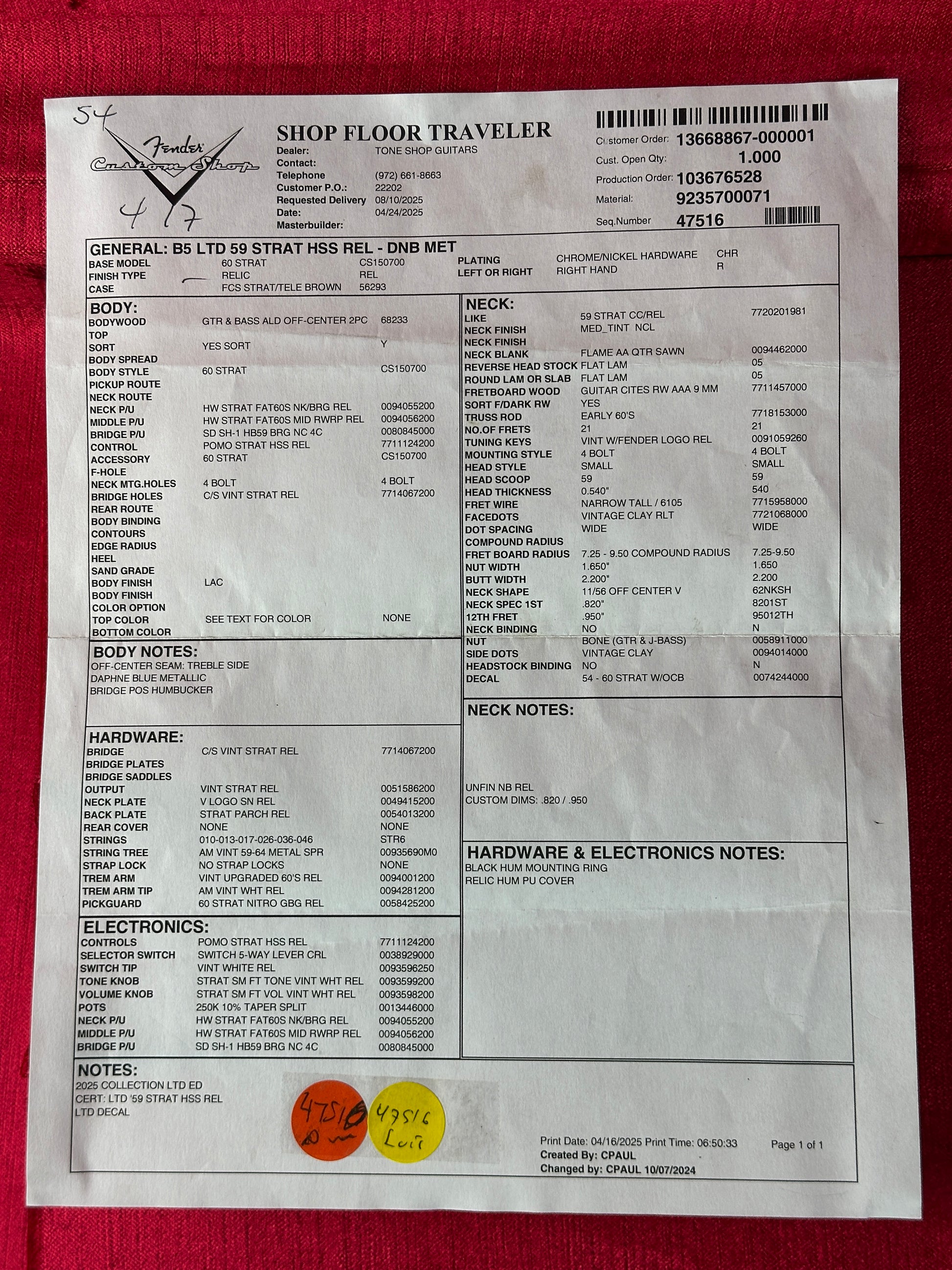 - Model: 1959 Stratocaster HSS Relic – Daphne Blue Metallic (Limited Edition, 2025 Collection)