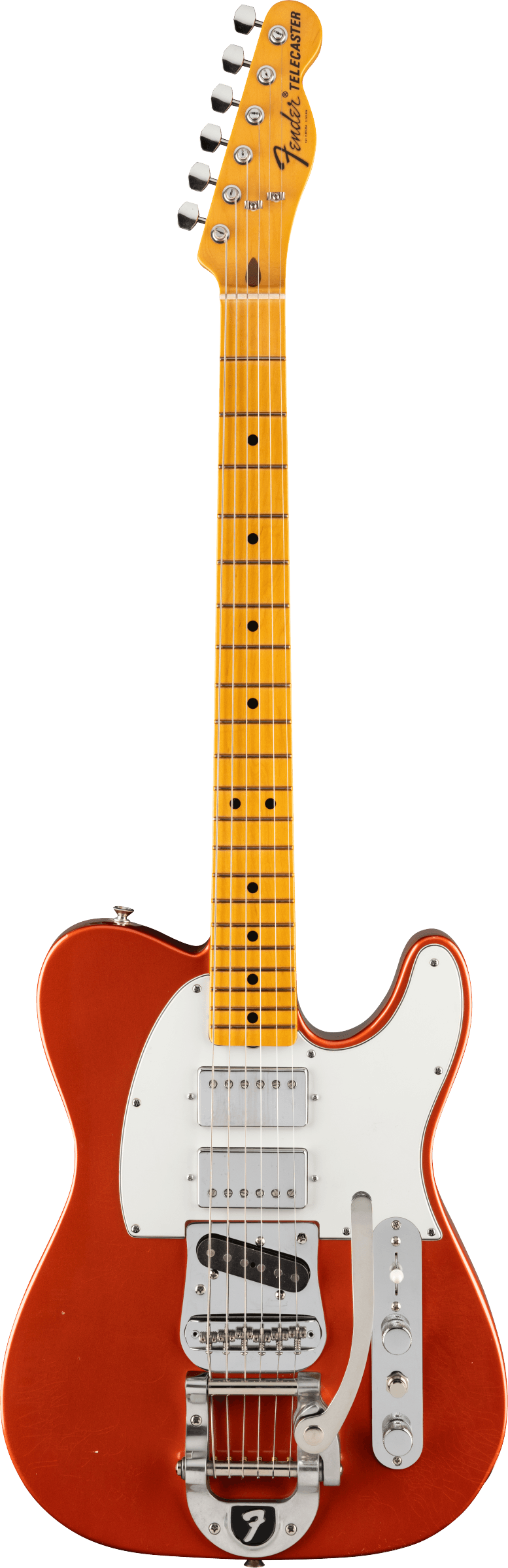 The Stories Collection Mike Campbell “Red Dog” Telecaster® features an Heirloom™ nitrocellulose lacquer “Red Dog Red” finish, 1-piece maple neck with 7.25” radius fingerboard with 21 vintage-style frets and an onboard “Destruct” boost circuit. The custom Mike Campbell Red Dog pickup set features two vintage-style humbuckers and a single-coil telecaster bridge pickup, Bigsby B5F tremolo and a custom Red Dog neck plate. Custom accessories include a vintage-style case, strap, picks and certificate of authenticity.