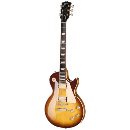 The Les Paul Standard 60s Double Trouble delivers all of the features and performance of our regular Les Paul Standard 60s models but with even more vintage appeal. These limited-run Les Paul models differ from our standard Les Paul Standard 60s models in two respects. First, the Burstbucker 61 R and Burstbucker 61 T humbucker pickups are left uncovered, and each has Double Classic White bobbins and is fitted with the standard Alnico 5 magnets. The second difference is in the finish. The finish colors are "Vintage" variations on our standard nitrocellulose lacquer finishes. Our standard gloss nitrocellulose lacquer finishes represent the finishes on brand-new models from the 1950s, while the full-gloss nitrocellulose lacquer Vintage finishes on the Les Paul Standard 60s Double Trouble models are slightly faded when compared to the standard versions, like the subtly faded light vintage aging that occurs over several years. The burst patterns vary somewhat from guitar to guitar since each is individually hand-sprayed. Of course, all of the standard features that make the Les Paul Standard 60s models so widely loved are all still here, including a solid, non-weight-relieved mahogany body with an AA figured maple top and a Slim Taper TM profile mahogany neck with a rosewood fretboard, 22 medium jumbo frets, and trapezoid inlays. The Les Paul Standard 60s Double Trouble is equipped with an ABR-I, the classic-style Tune-O-Matic bridge, an aluminum Stop Bar tailpiece, Grover Rotomatic tuners with Kidney buttons, and gold Top Hat knobs with silver reflectors and dial pointers. The uncovered Burstbucker 6 IR (neck) and Burstbucker 61 T (bridge) pickups are internally the same as their standard Burstbucker counterparts, with the exception of the Double Classic White bobbins. They are handcrafted in the Gibson Pickup Shop, loaded with Alnico 5 magnets, and hand-wired with audio taper potentiometers and Orange Drop capacitors. The