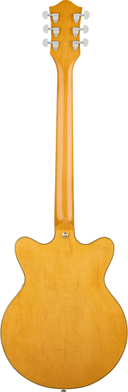 - Body: Smaller double-cutaway arched maple, chambered center block