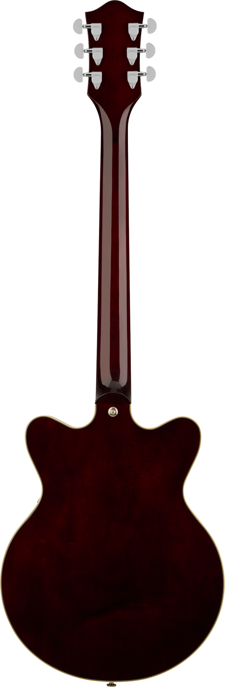 With its fast, comfortable "soft C" nato neck, 12"-radius laurel fingerboard, 22 medium jumbo frets, and real bone nut, this Gretsch plays as smooth as it looks. The Bigsby® B50 vibrato and anchored Adjusto-Matic™ bridge add vintage shimmer and rock-solid tuning stability, while the 1-ply cream pickguard and nickel hardware round out the classic Gretsch aesthetic.