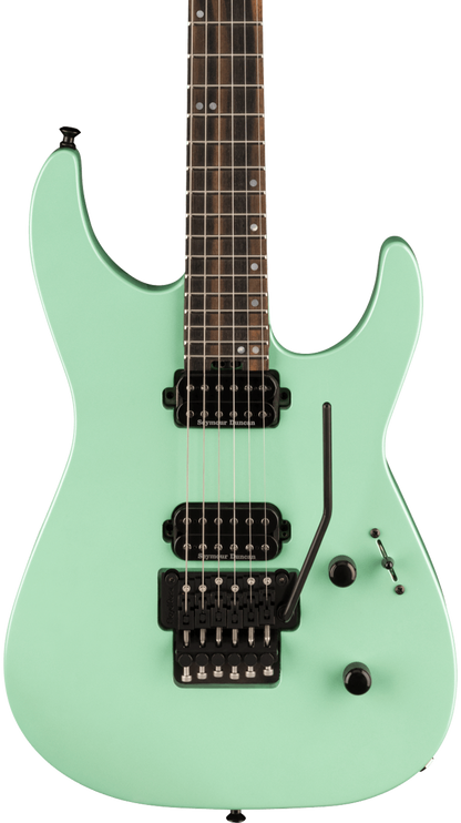 - Available in Mystic Blue, Satin Black, Satin Shell Pink and Specific Ocean with a color matched, bound Jackson pointed 6-in-line headstock and black hardware