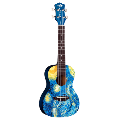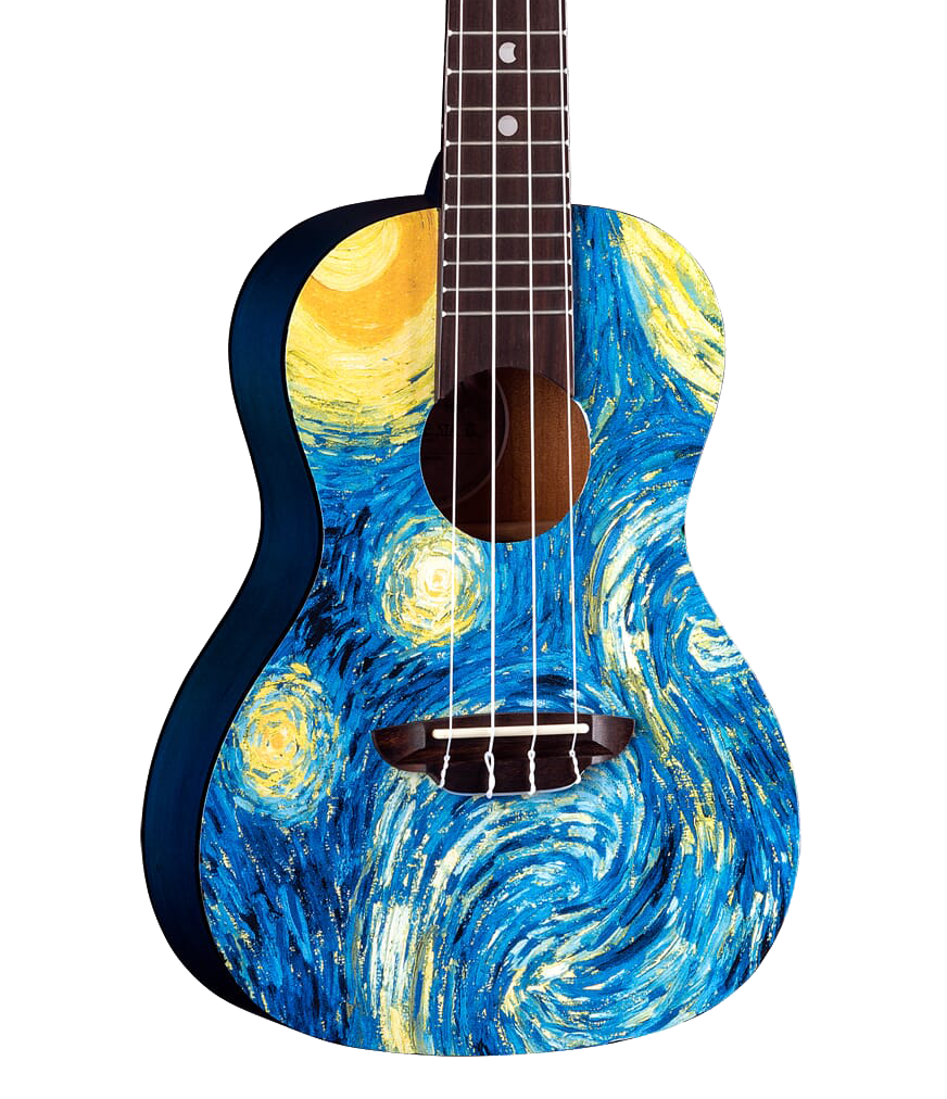 The Uke Starry Night Concert encourages uke players to truly "Play the Art of the Music" - Creativity inspires all! "This morning I saw the countryside from my window a long time before sunrise, with nothing but the morning star, which looked very big." These words were written by van Gogh, to brother Theo, describing his inspiration for one of his best known paintings. Beautifully handcrafted from select eastern mahogany, this uke boasts quality construction to match its sound and stunning design. Whether looking for a ukulele for impromptu gigs, younger players or song writing on the go, a Luna uke is perfect for a variety of players and needs. This concert uke boasts a clear, resonate sound both by virtue of its concert body with maple top and mahogany body. Gig bag included.