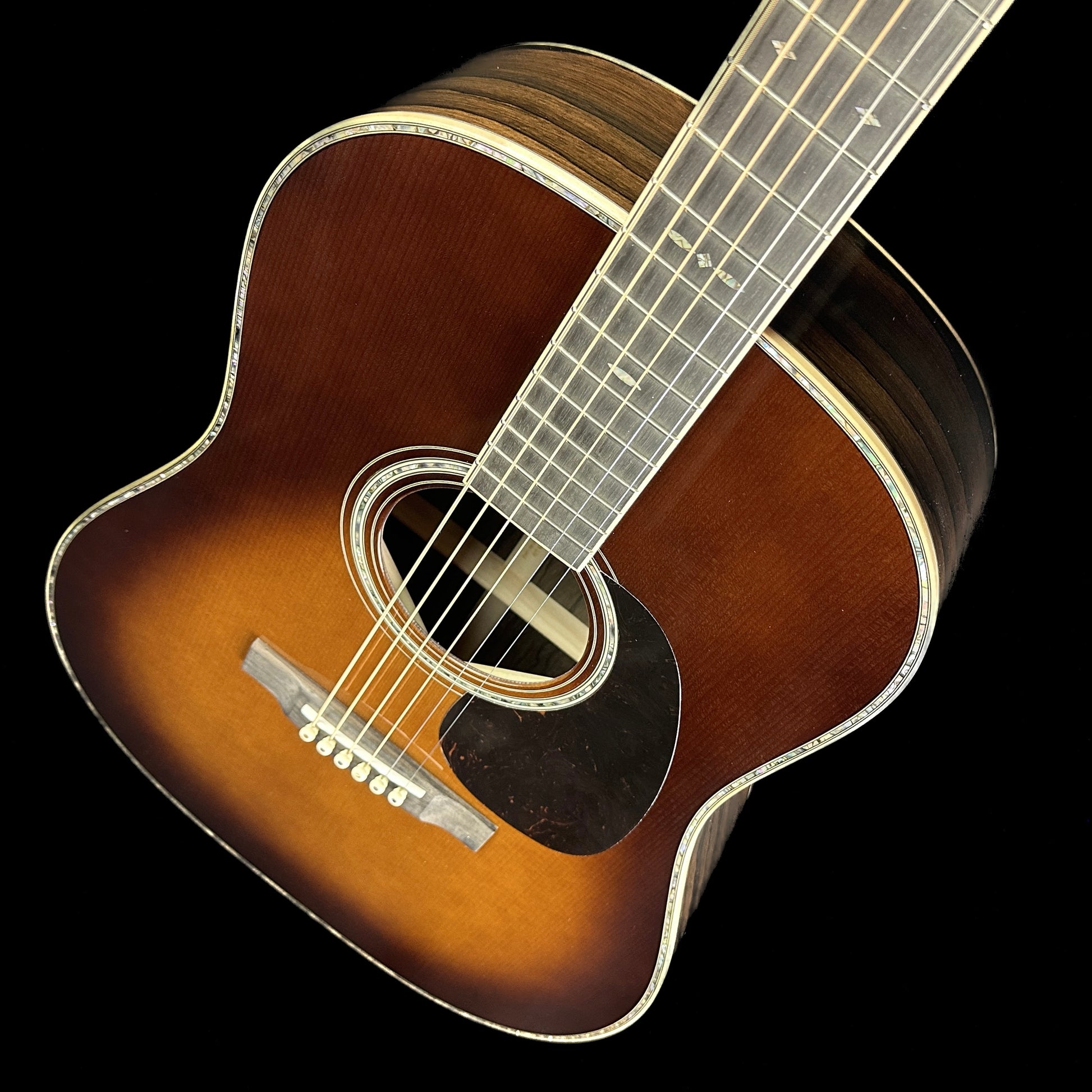 Crafted with passion and precision, the Martin Custom Shop guitars designed by Tone Shop Guitars’ custom expert Mike Doty are a testament to the art and craftsmanship of lutherie. Each guitar is a masterpiece, featuring hand-selected tone woods that not only ensure superior sound quality but also add a unique character to every instrument. The meticulous selection process guarantees that each piece of wood contributes to the rich, resonant tones that Martin guitars are renowned for.
