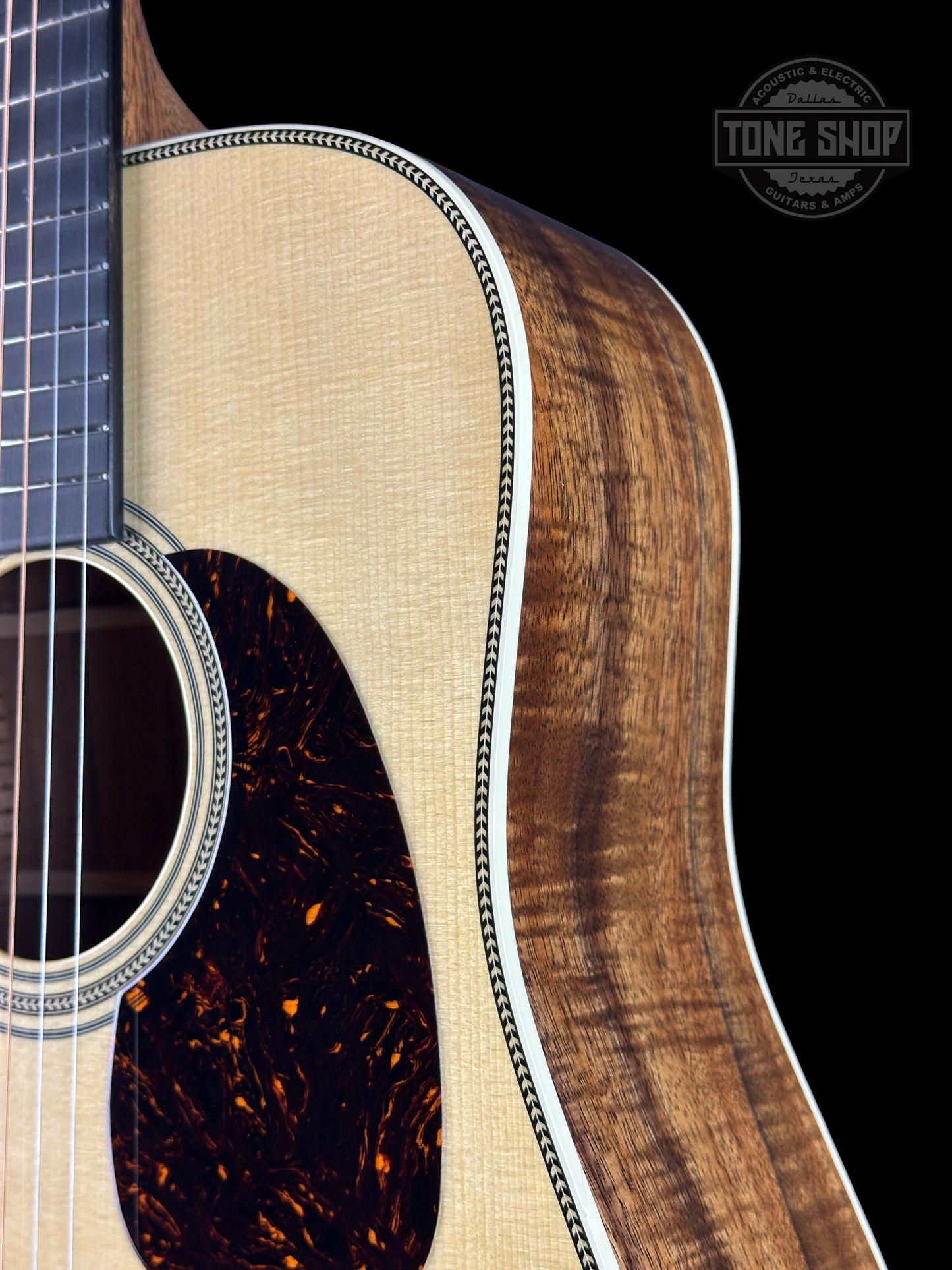 Discover a true one-of-a-kind Martin—custom-built for Tone Shop Guitars with hand-selected woods direct from the Martin Custom Shop. The HD-28 Adirondack / Exceptional Broad Figure Koa pairs a powerful Adirondack spruce top and bracing with stunning, highly-figured koa back and sides, carefully chosen by our team for their unique grain and tonal properties.