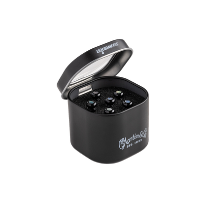 LUXE BY MARTIN® bridge pins are just another example of the company’s mission to constantly improve the tone and playability of our guitars. These high-tech pins are made from Liquidmetal®, a Zirconium alloy, that reflects energy instead of absorbing it. The result is an increase in volume and sustain, without sacrificing the low-end, or richness, of the guitar’s tone. In addition, they are extremely durable and will last significantly longer than most bridge pins on the market today.