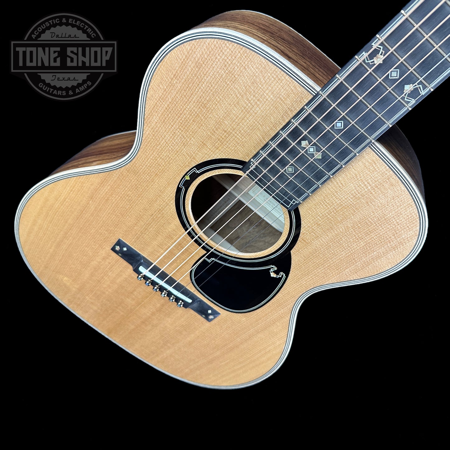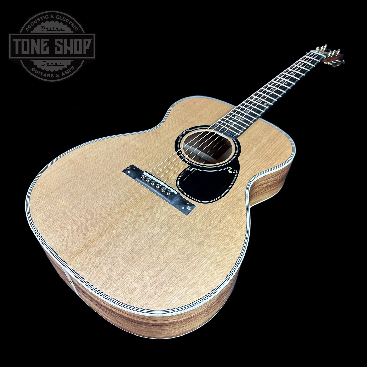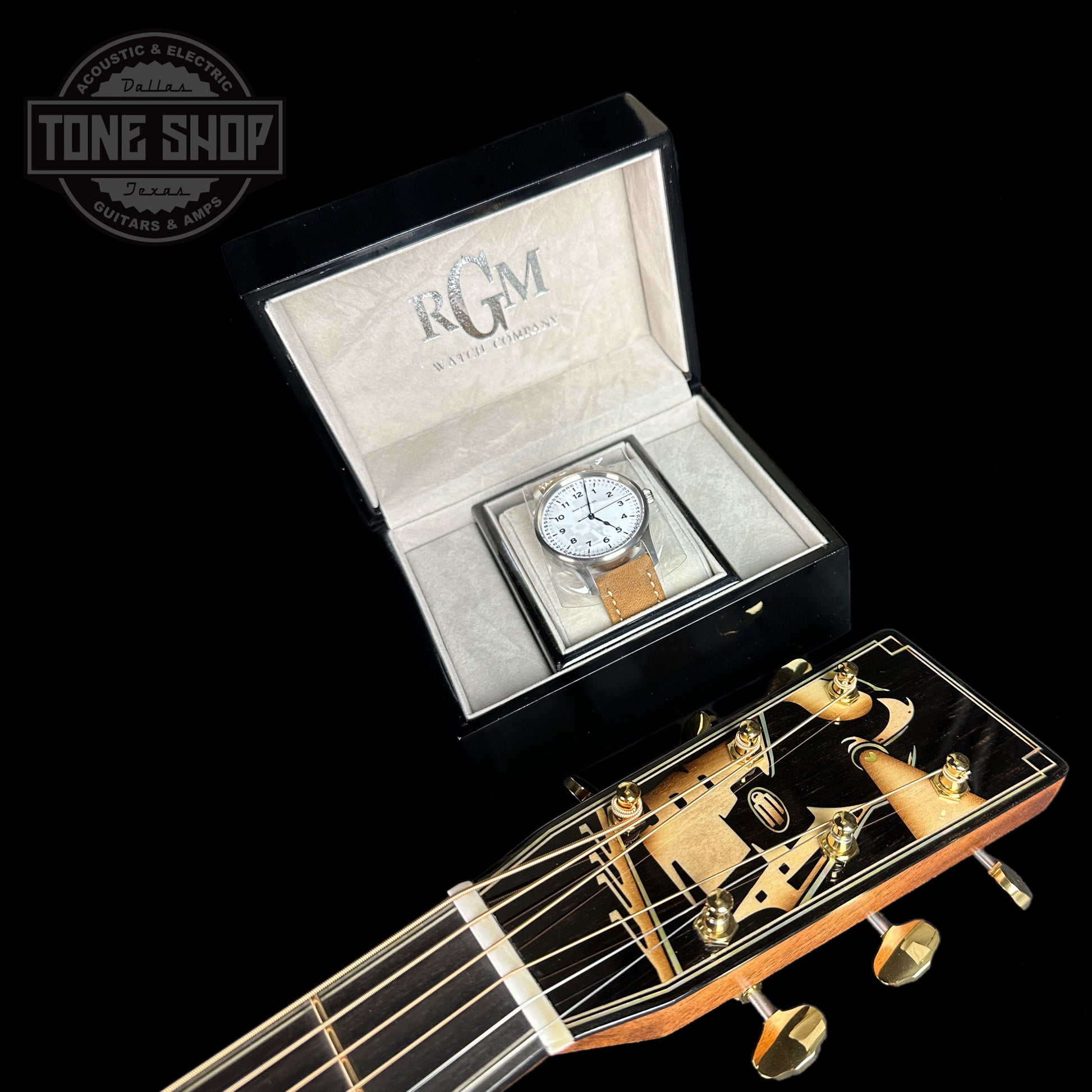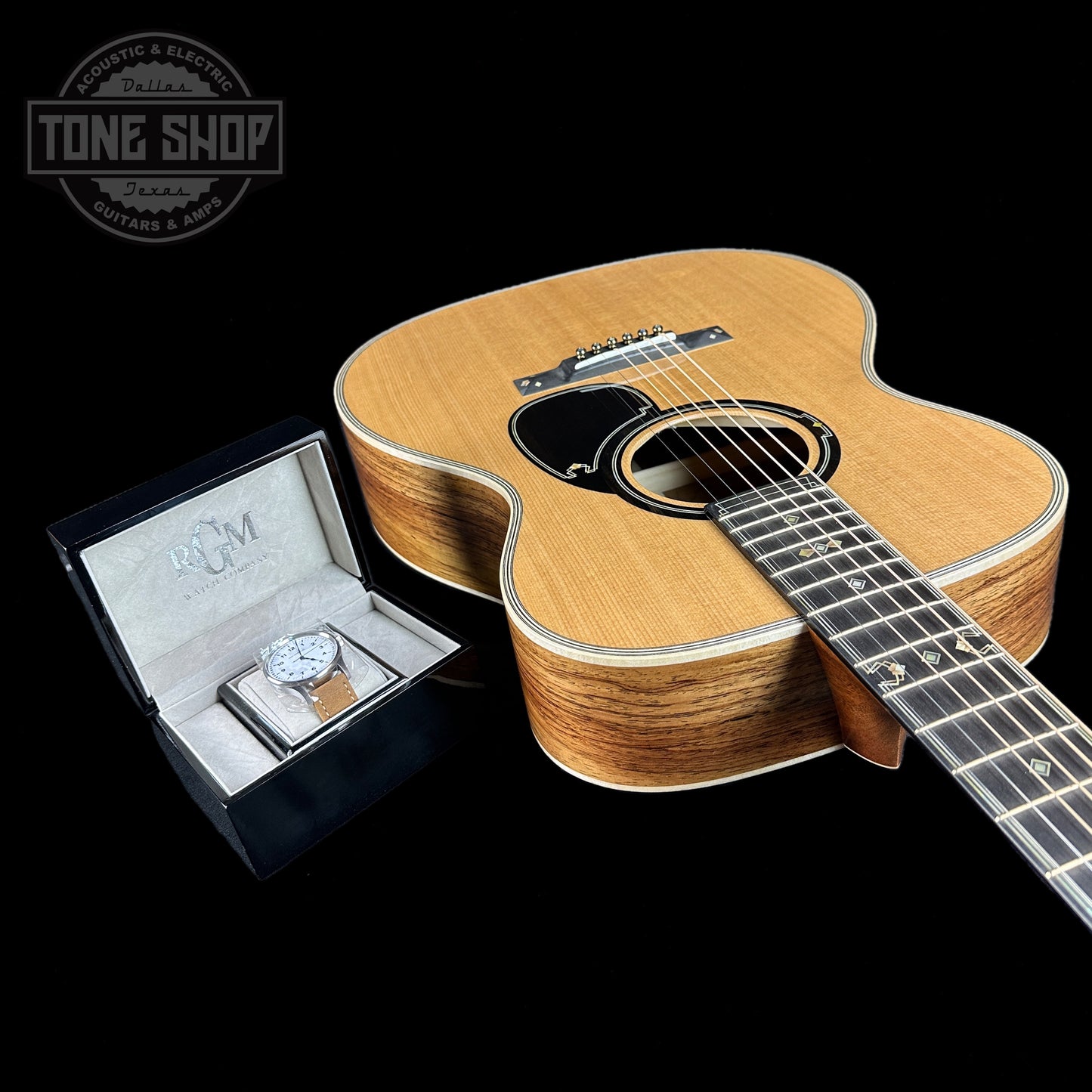All aboard! Martin and Pennsylvania-based watchmaker RGM have teamed up once again to create something truly unique—the OM 20th Century Limited. Celebrating technology and innovation, this limited-edition handcrafted work of art pays tribute to the Art Deco-inspired passenger train of the same name that revolutionized travel in the mid-1930s—around the time that would become known as Martin’s “Golden Era,” when the company’s instruments began to revolutionize music. This guitar is full of intricate design elements, including custom streamliner-inspired inlay throughout, European flamed maple binding, gold open back tuning machines, and an inlaid ebony pickguard. The OM 20th Century Limited also features hide glue construction, a spruce VINTAGE TONE SYSTEM® (VTS) top, and Guatemalan rosewood back and sides for superior tone. The guitar even comes with a custom, handcrafted railroad-inspired watch from acclaimed watchmaker RGM. Only 20 of these elegant OM 20th Century Limited guitars will be built.