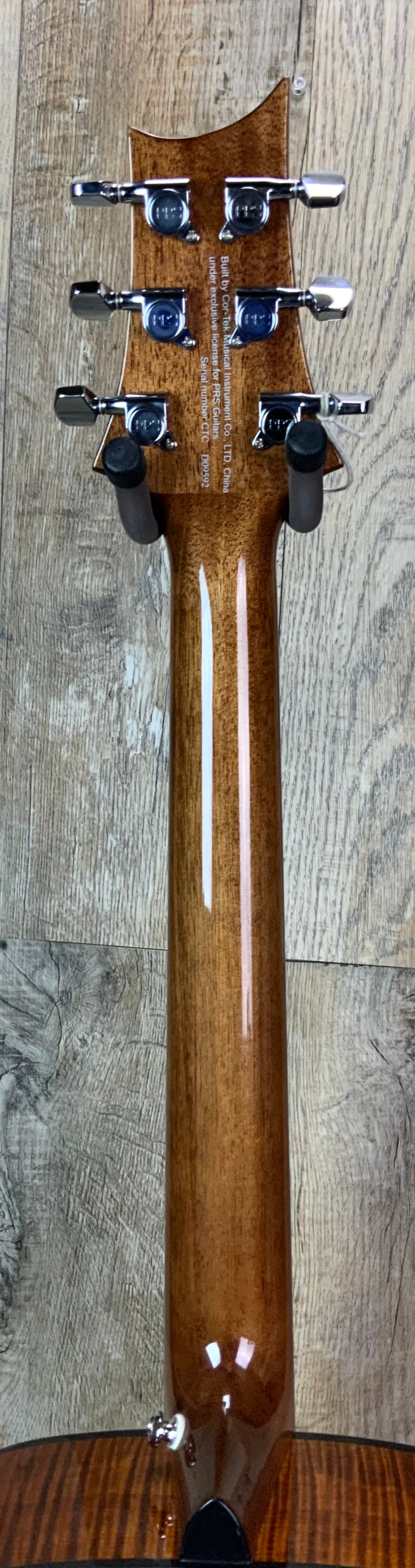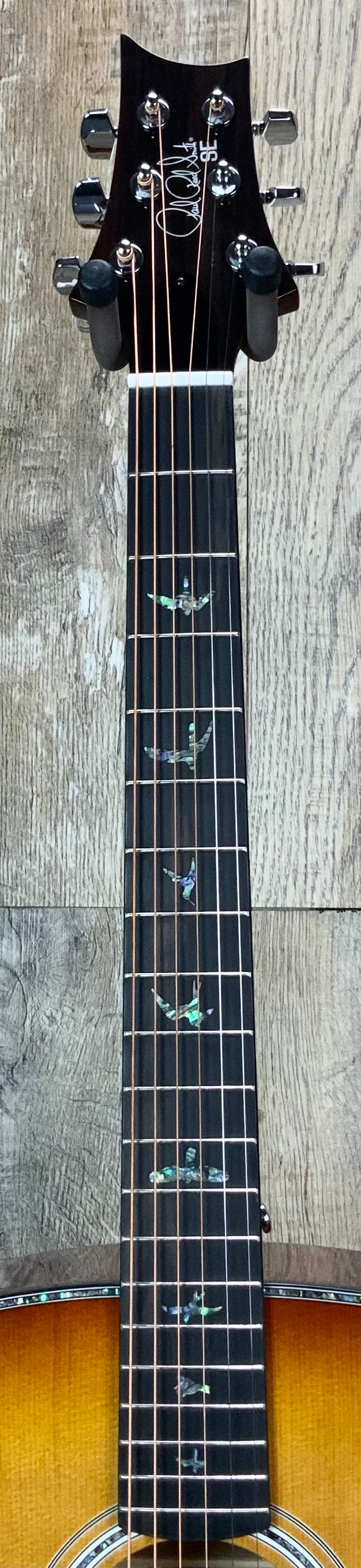 Additional high-quality features include a solid spruce top, ebony fretboard and bridge, bone nut and saddle, as well as PRS trademark bird inlays and headstock design. Ships with a high-quality hardshell case.