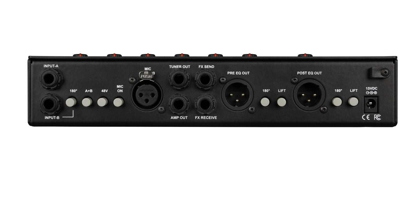 The PZ-Pro is designed for instrumentalists and performers who take a no-compromise approach when it comes to tone, both on stage and in the recording studio. Dual input channels allow you to switch between or blend together two sources, with full control over the sound of each input. Each channel has its own semi-parametric equalizer section and input level, along with individual filter controls to reduce feedback on stage. The second channel of the PZ-Pro also features a microphone input to allow any dynamic or condenser microphone to be used, including clip-on instrument mics or even vocal microphones. An FX Loop with a wet/dry knob provides the ability to blend in as much or as little pedal effects as desired, with a footswitch to bring them in and out of the signal chain at a moment's notice. Finally, once your tone is completely dialed-in, balanced XLR direct outs feed the PA system or a recording interface, with both Pre-EQ and Post-EQ outputs available.