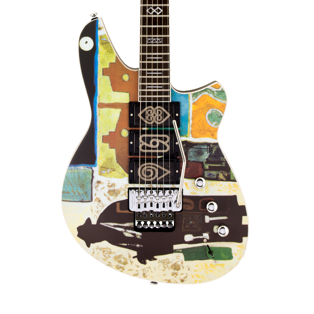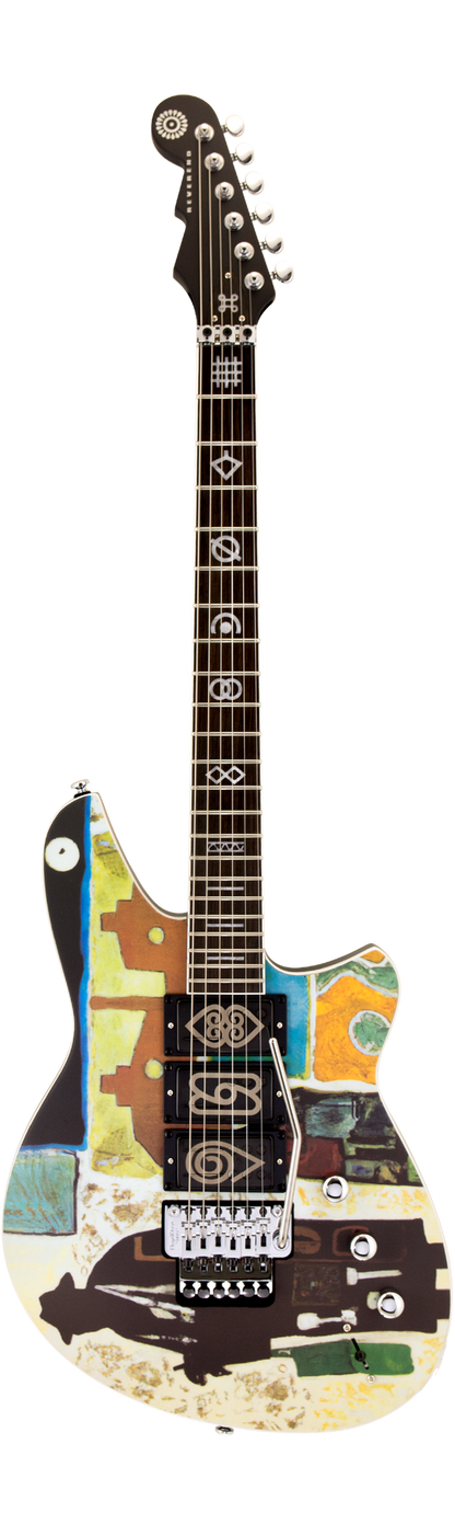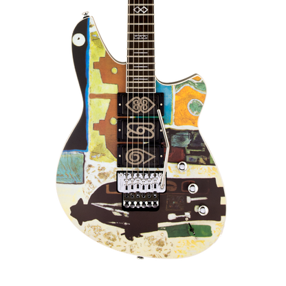 From the vivid imagination of Vernon Reid comes the Totem Series of Reverend Vernon Reid guitars. A sleek body features graphics inspired by Carl Jung’s Collective Unconscious Theory, Joseph Campbell’s The Hero’s Journey, and artists Jean-Michel Basquiat and Romare Beardon. West African Adinkra symbols adorn the pickups and headstock, while American Hobo symbols grace the fretboard. Africana and Americana symbolism meld with profound graphics, conjuring vivid images that speak to humankind’s perilous, yet necessary journeys.