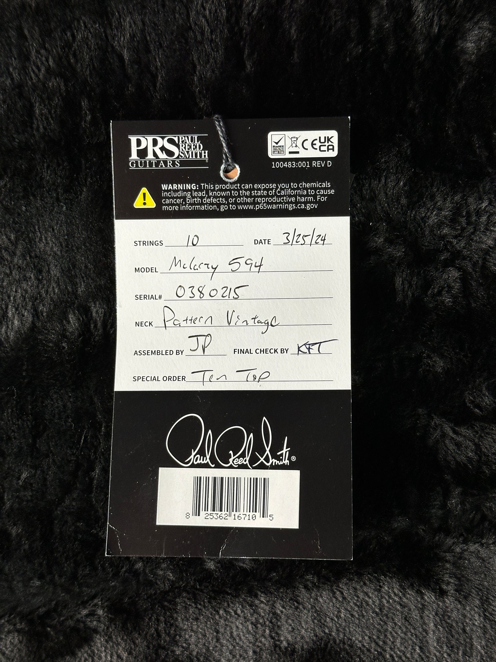Used 2024 PRS McCarty 594 10 Top Charcoal Burst w/case TSU21281